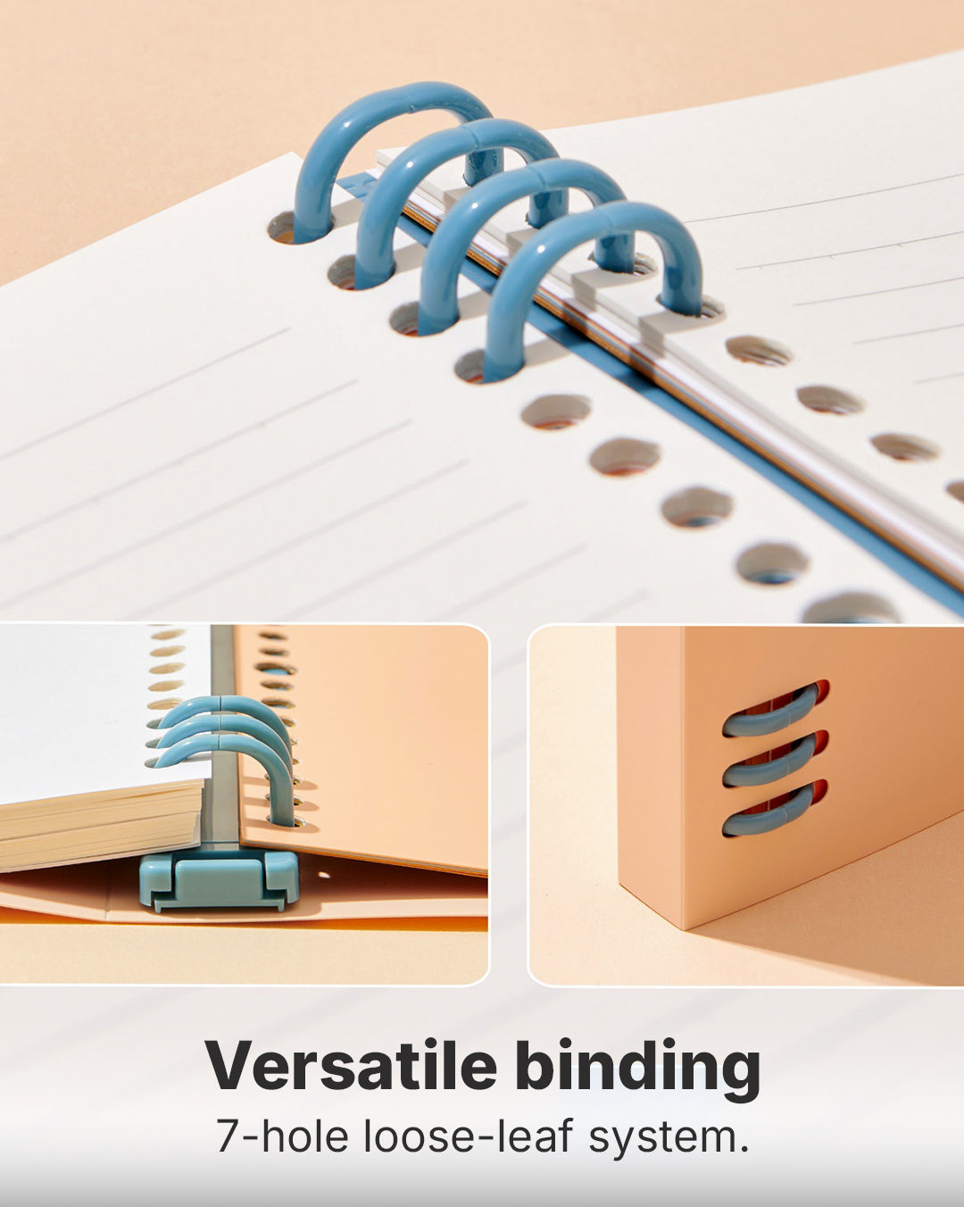 - 7-hole loose-leaf ring, versatile inner pages, worry-free battery life, and reduced troubles in changing cores.