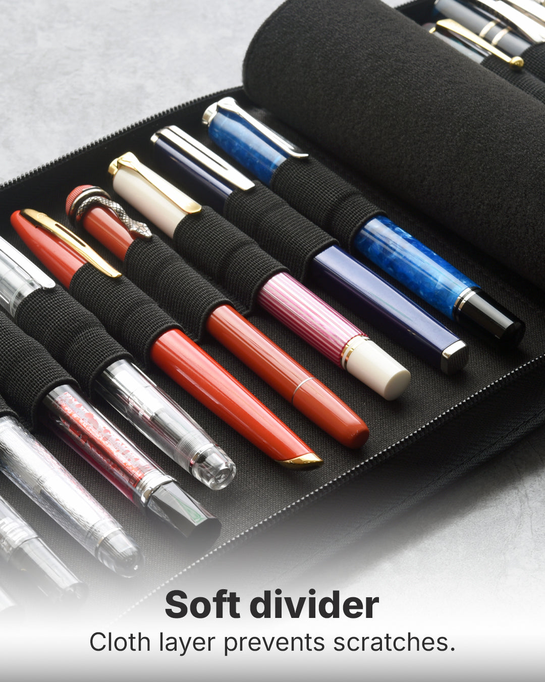 - A built-in cloth towel between the two sides prevents any damage to your writing instruments when the case is closed.