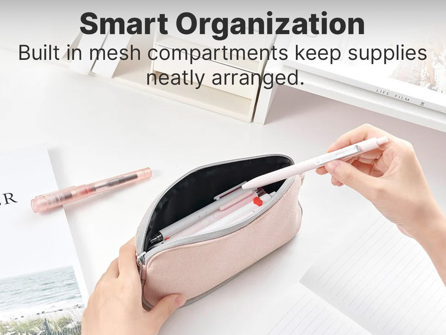 Meet the Aiso Stationery Bag! It’s water-resistant and tough, with a large capacity that lets you switch between two forms. Equipped with built-in mesh compartments, it provides organized storage for refills, erasers, and more. Elevate your organizational game with the Aiso Stationery Bag.