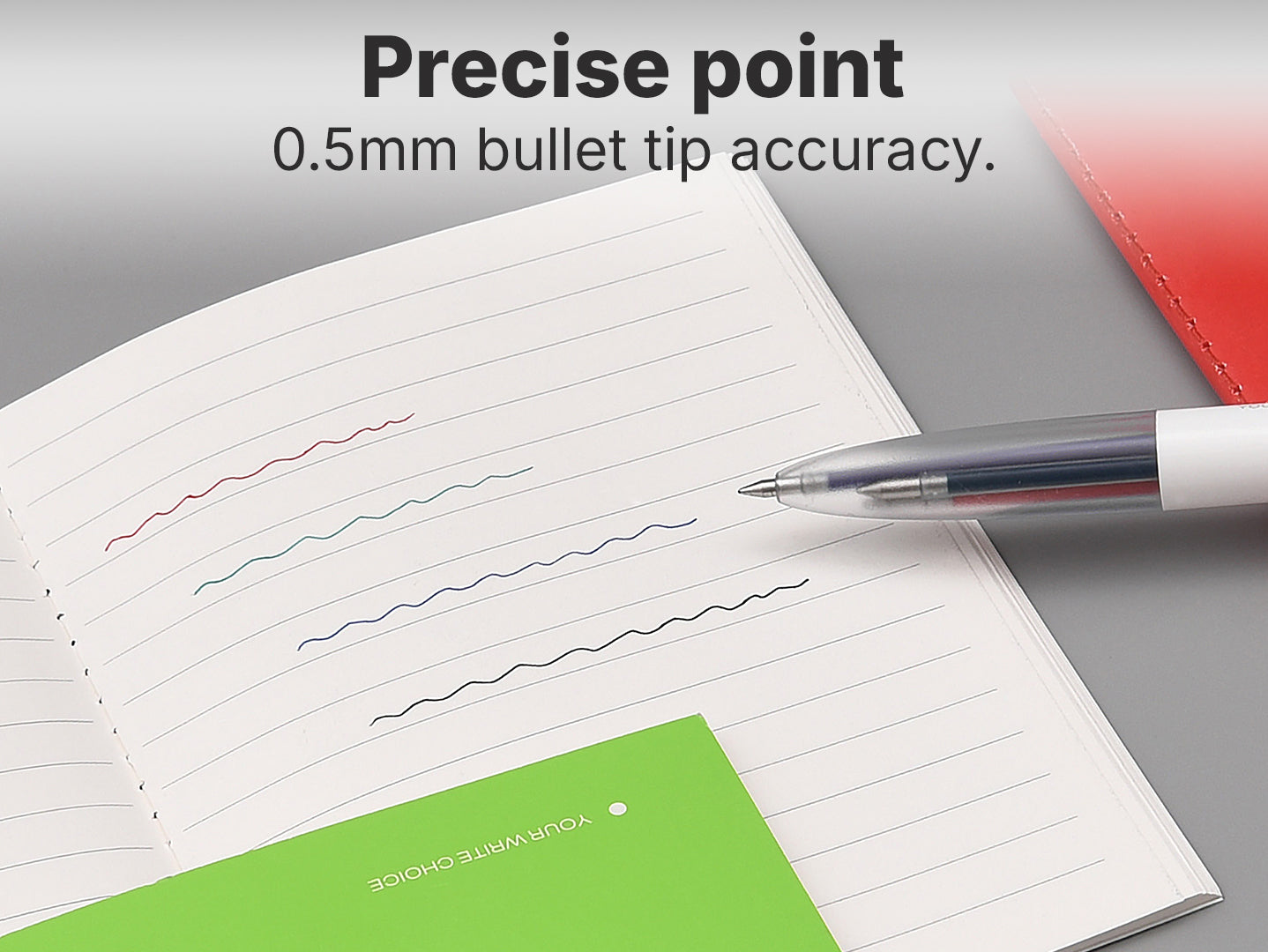 - 0.5mm bullet point black/red/blue/green refill.