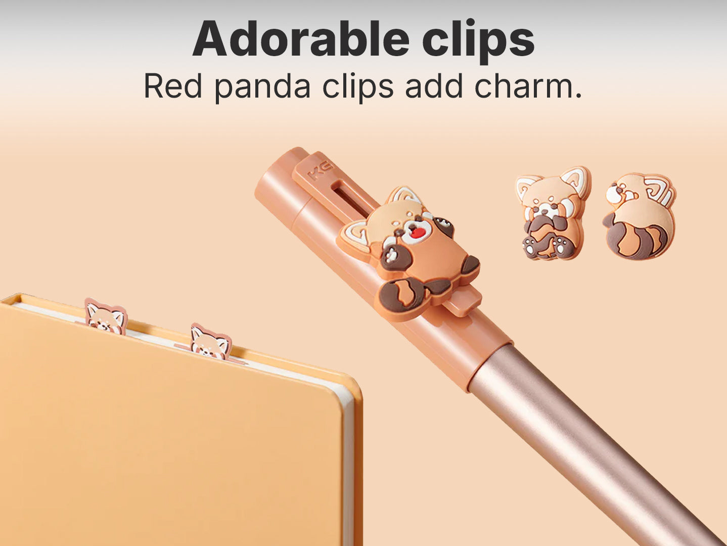 - Three adorable pen cap clips featuring the red panda, keeping you company as you write.
