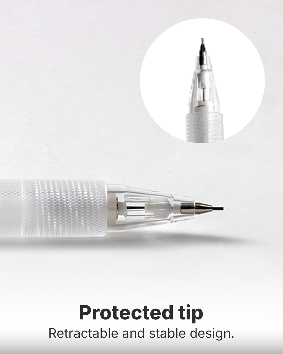 - Equipped with a retractable pen tip for stable writing and effective protection of the pen tip.